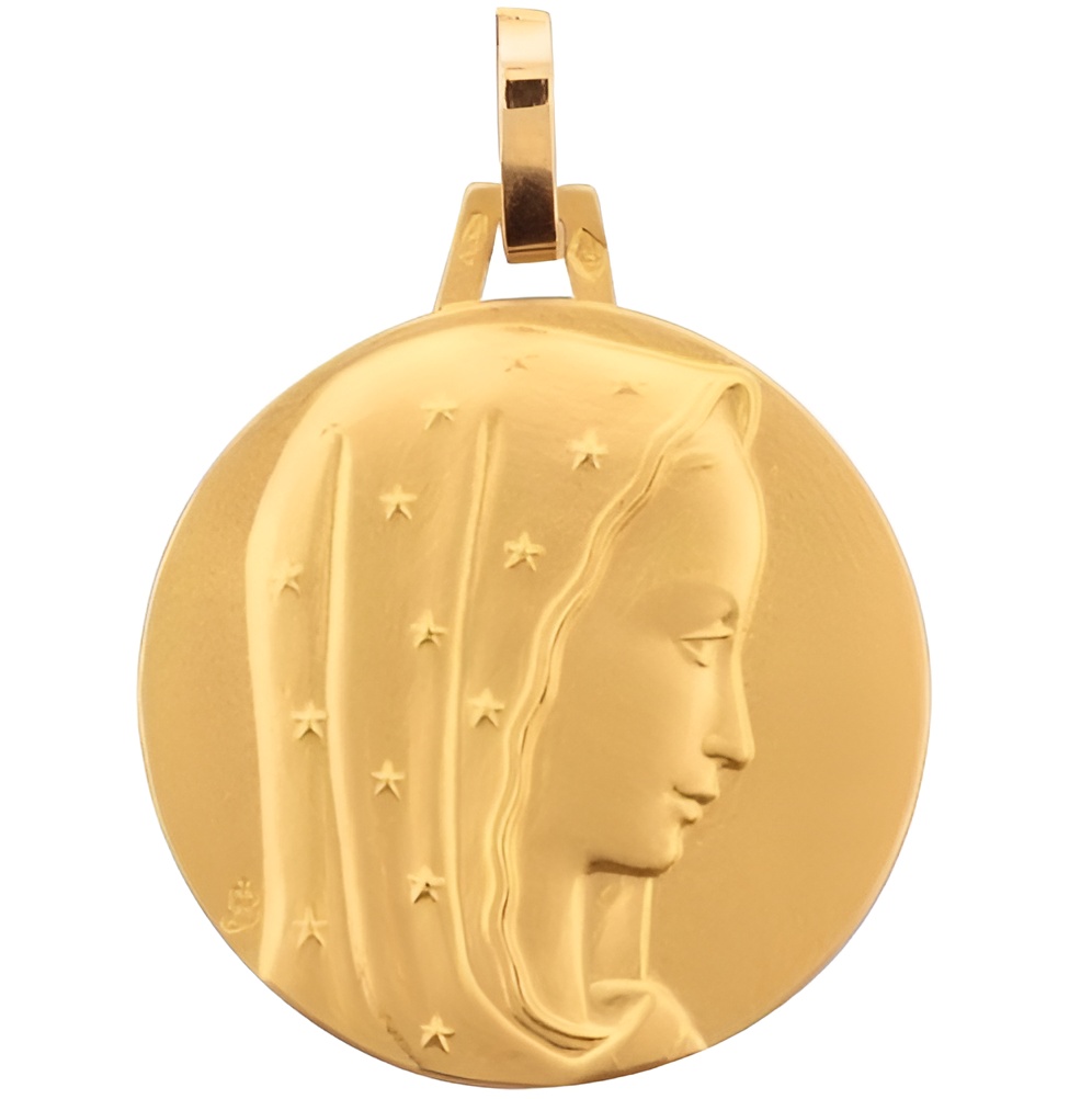 Médaille de bapteme Pichard-Balme « Vierge au voile étoilé » en or jaune véritable 18 carats, poids: 2,45 g, son diamètre de 18 mm fait de ce bijou un très beau cadeau de baptême, qui sera livré dans son écrin. Médaille fabriquée en France dans les ateliers de la maison Pichard-Balme. (Cette médaille Pichard-Balme existe aussi avec un diamètre de 16 mm en vente sur le site).